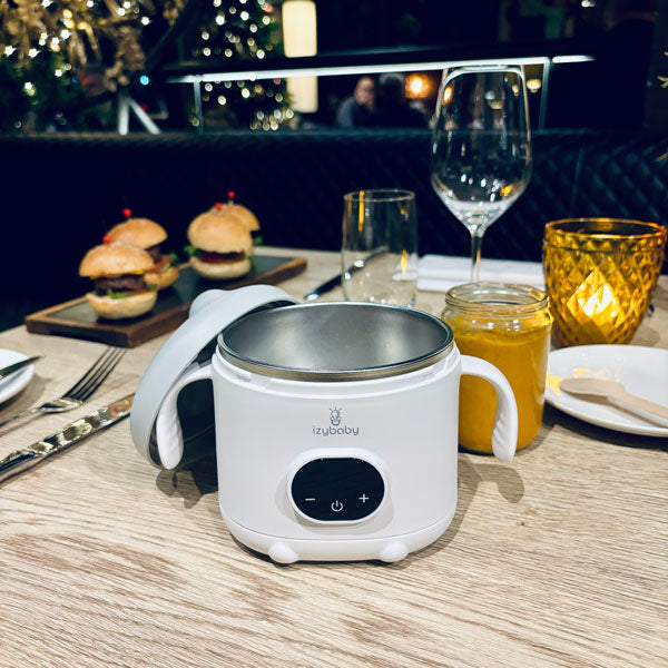 Nous avons décidé de créer un chauffe petit pot portable et sans fil qui vous accompagne partout. Grâce à sa batterie intégrée et son couvercle 100% hermétique, le Chauffe Petit Pot Nomad™ 3.0 saura préparer le repas de bébé à la température idéale dans n’importe quelle condition et dans n’importe quelle situation. Que ce soit au restaurant, au parc, dans l’avion, en balade, vous pourrez chauffer votre petit pot en toute autonomie, où vous voulez et quand vous voulez.