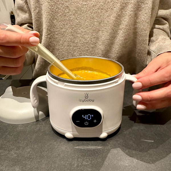 Choix de la température à 40C° et 50°C pour chauffer tous types d'aliments. Il faut entre 5mn et 10mn pour chauffer le repas de bébé